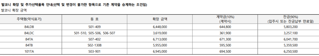 힐스테이트리슈빌 발코니 확장금액입니다